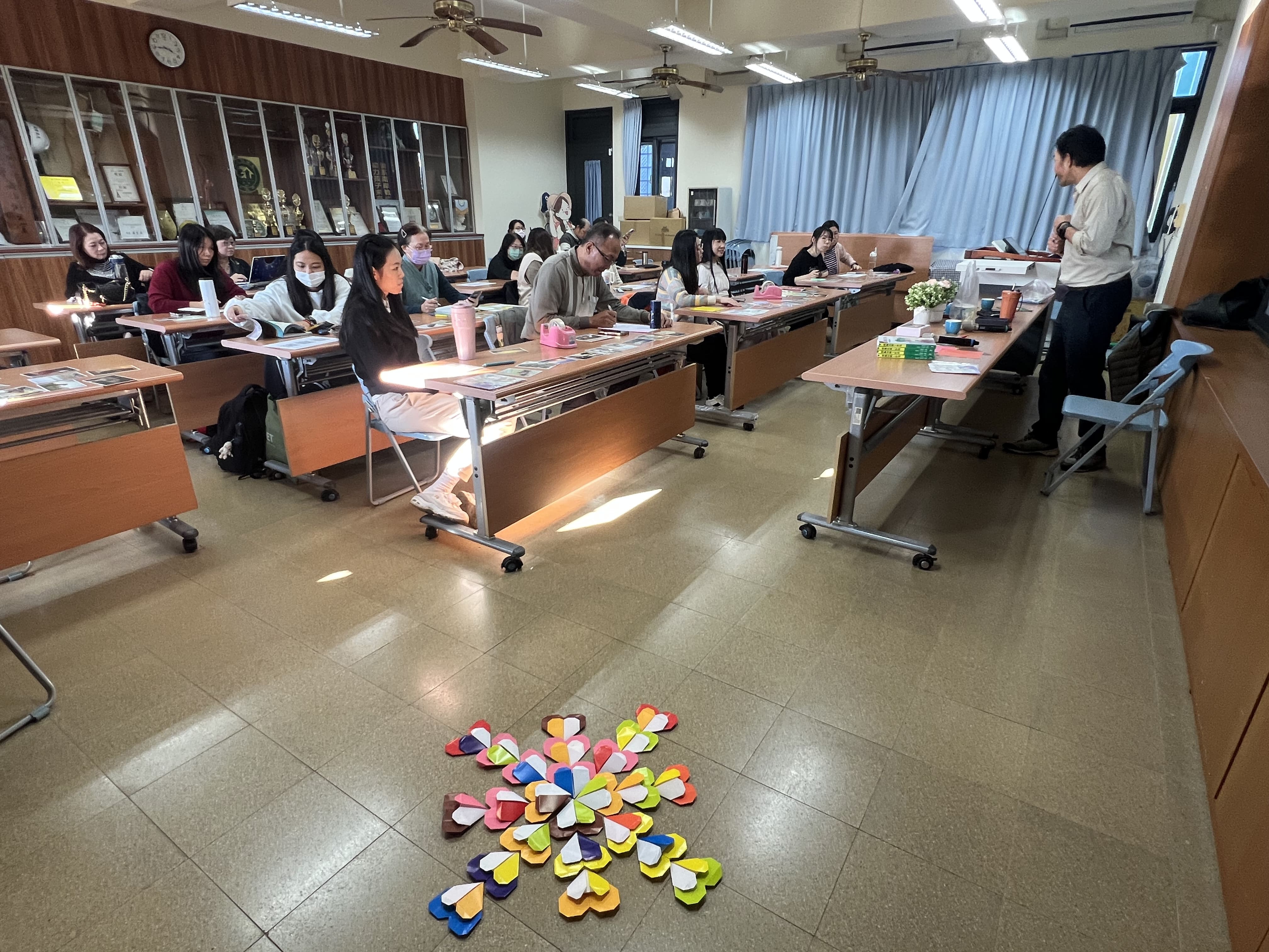 學員將壓力源寫在色紙上,進行藝術治療-摺紙體驗