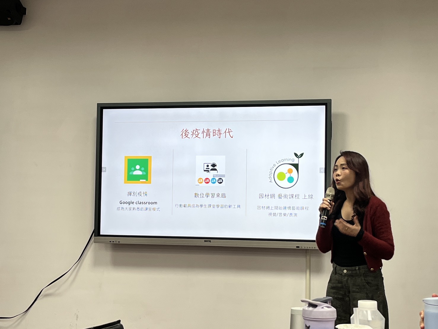 輔導團的輔導員老師們也都分享了他們在教學上的小技巧:郁雯老師帶來動感又有趣的舞蹈教學;季穎老師介紹她與中教大的大學生們合作製作了一齣精采的兒童音樂劇,並加碼一個她設置的海拉魯冒險地圖網站進行SEL音樂教學;郁棻老師帶來好幫手:因材網的使用,分享數位與表藝結合的精彩課例;曉青主任也分享了國小表演藝術課程一直存在的問題:沒有師資與資源,但透過因材網,也能讓我們開啟了無限可能。