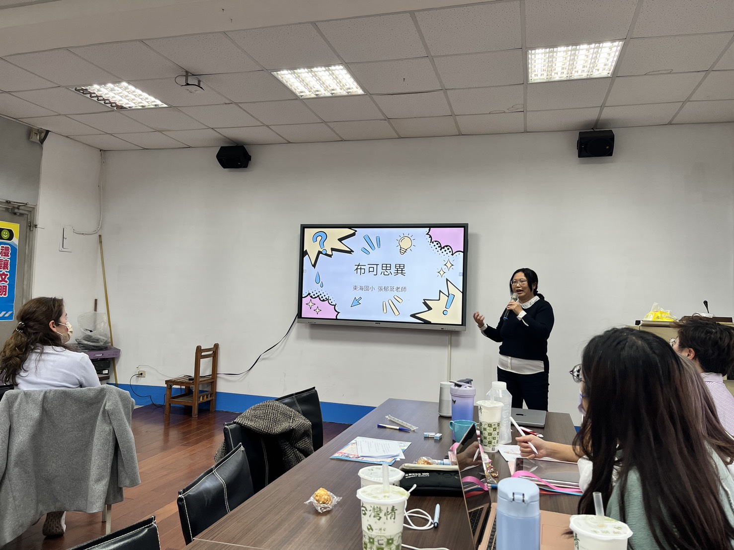 玉華主任分享東海國小透過跨領域(從體育課融入舞蹈)的課程帶領中年級的孩子們建立有美感的肢體展現與自信,也安排外聘藝術家進行教師研習並將外聘教師的隊形設計進行經驗的轉移,在運動會的時候進行成果的展演,讓東海的師生有更多的動能讓美感深耕。